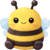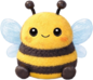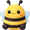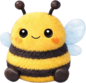 A small, round bumble bee plush with a chubby oval body and a soft, beginner-friendly silhouette. Bright yellow and black striped fabric wraps evenly around the torso, with a fuzzy, velvety texture that emphasizes its cuddly shape. Tiny rounded wings made from semi-transparent pale blue fabric sit neatly on its back, slightly raised for a light, airy look. Short antennae with rounded tips, stubby legs, large shiny black button eyes, and a simple stitched smile give the bee a cheerful, comforting expression.