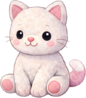 A cozy cat plush with soft white fur, rounded paws, and a gentle pink nose and ears. Its bright eyes and subtle whisker details give it a calm, friendly expression that feels warm and comforting. With a simple seated pose and plush tail curled close, this kitty is an easy favorite for collectors. Higher-quality versions feature smoother fur texture, cleaner stitching, and more evenly shaped stuffing, giving the plush a polished, premium feel.