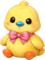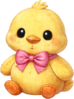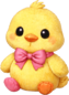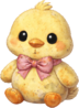 A soft yellow chick plush with fluffy feathers, a tiny orange beak, and a pink bow tied neatly around its neck. Its round body and wide, shiny eyes give it an innocent, cheerful charm that feels perfect for springtime collections. Higher-quality versions feature smoother feather texture, brighter fabric colors, and more evenly shaped stuffing, giving the plush a cleaner and more polished look.