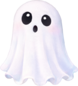 A floating, sheet-style ghost plush with a rounded top and softly draping bottom edges that ripple like fabric caught in a gentle breeze. The face features large oval eyes and a tiny stitched “o” mouth, giving it a permanently surprised yet adorable expression. Made from soft white fabric with a slightly translucent look, the edges carry faint pastel shading that adds depth without losing the ghostly feel.