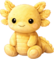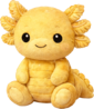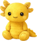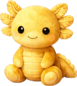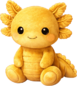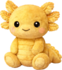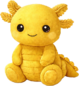 A radiant golden axolotl plush with a warm, sunlit glow and soft, velvety texture. Its frilled gills bloom like tiny golden petals, while its gentle smile and bright eyes give it a cheerful, magical presence that feels both lucky and lovable.