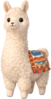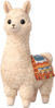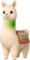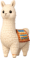 A tall, proud llama plush with fluffy cream-coloured fleece and a gentle, curious expression. Its long neck and upright stance give it a slightly regal silhouette, while its round glossy eyes and soft stitched smile keep it friendly and approachable. Draped over its back is a colourful woven-style blanket with bright patterns and tiny tassel details, adding a charming, adventurous touch. The overall look feels warm, sturdy, and quietly confident.