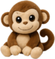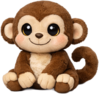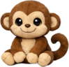 A cheerful little monkey plush with soft warm-brown fur, a creamy face and belly, and a gently curled tail that loops behind it. With big shiny eyes and a playful stitched smile, it sits ready for cuddles, full of curious, mischievous charm.