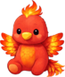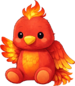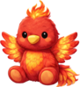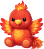 A vibrant phoenix plush glowing in shades of crimson, orange, and golden amber, with soft flame-shaped wings and a flickering tuft of fire atop its head. Its warm embroidered chest and flowing tail feathers give it a bright, reborn-from-the-ashes charm-small, cuddly, and full of fiery spirit.