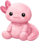 A soft pink axolotl plush with a rounded body, fluffy external gills, and a calm, friendly expression. Its warm rosy color and smooth fabric give it a cozy, comforting feel, while the gently curved tail adds to its adorable aquatic charm. Higher-quality versions feature fuller gill fronds, silkier fabric texture, and more even stuffing, giving the plush a polished and extra-cuddly finish.