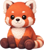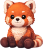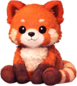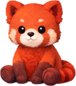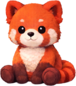 A fluffy red panda plush with rich rust-orange fur, creamy white facial markings, and a soft, striped tail curled neatly beside it. Its rounded body, dark plush paws, and wide, gentle eyes give it a cozy, forest-dwelling charm that feels both playful and comforting.