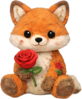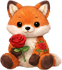 A charming little fox offering a rose as sweet as its smile. This lovable plush is a perfect bundle of warmth, affection, and woodland charm.