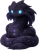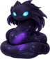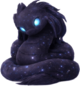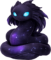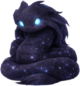 Coiled from the fabric of the cosmos, this silent leviathan drifts between stars with eyes that glow like distant galaxies. Though born of the void, it rests peacefully at your side, a gentle guardian of the endless night.